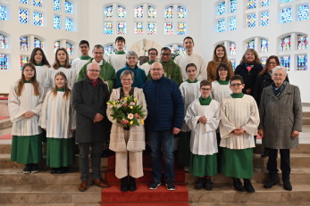 Die gesamte Pfarrgemeinde – vertreten durch Pfarrer Werner Sulzer, Pfarrvikar Pater Robin, die Kirchenverwaltung, den Pfarrgemeinderat, die Kommunionhelferinnen und -helfer, die Lektorinnen und Lektoren sowie die Ministrantenschar – sprach ihren herzlichen Dank für das stets vertrauensvolle und harmonische Miteinander aus. Für ihren weiteren Lebensweg wünscht die Pfarrei Claudia Wagner Gesundheit, Zufriedenheit und Gottes reichen Segen.